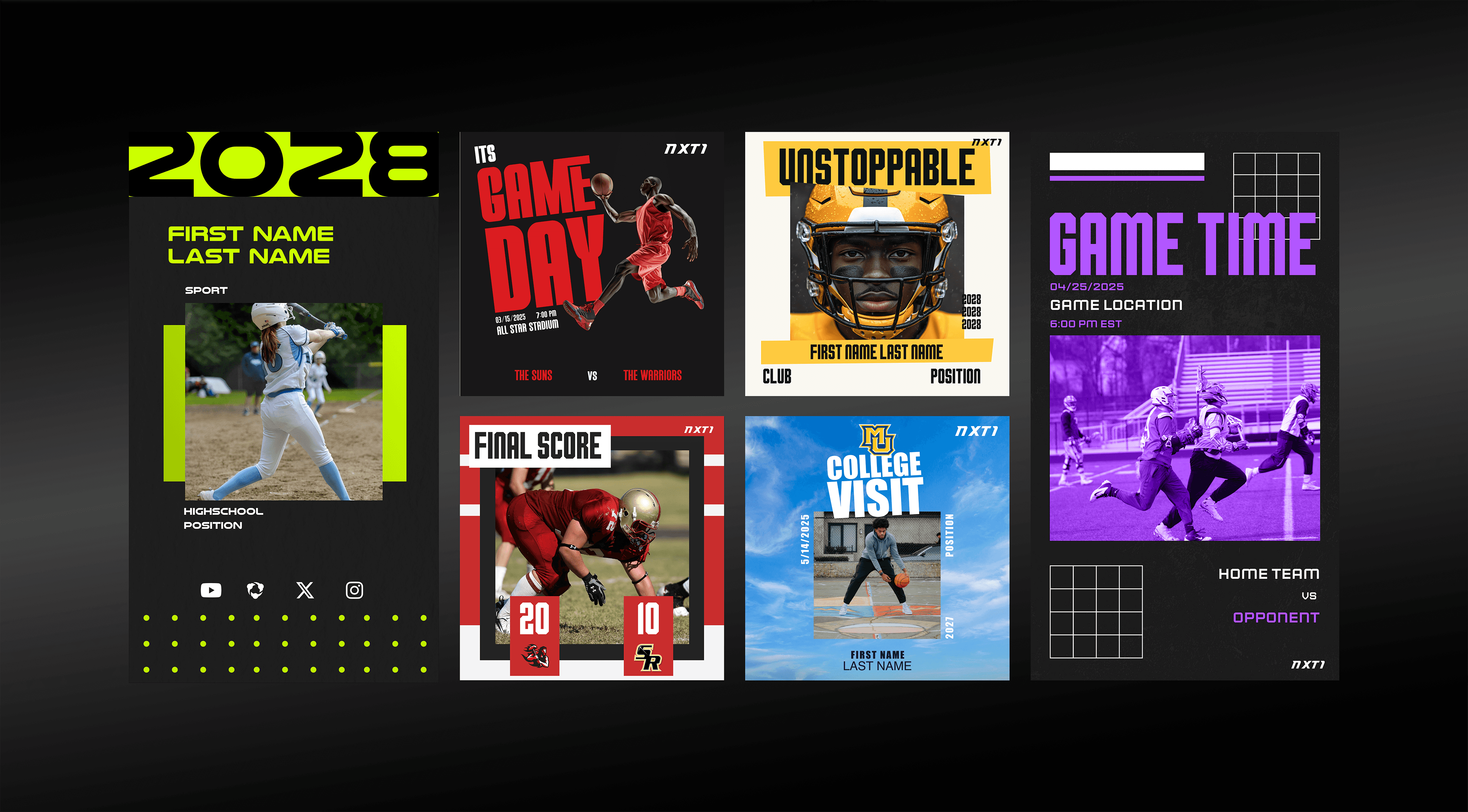 Created over 200 unique, ready-to-share templates tailored for high school athletes and athletic programs, enabling them to professionally showcase highlights, achievements, and performance statistics across social media. Collaborated closely with the CTO and founding team to ensure all visual assets aligned with brand guidelines and integrated seamlessly within the NXT1 app and web platform. In addition to static design work, produced and edited a series of video tutorials aimed at expanding platform adoption, strengthening user engagement, and increasing the company’s digital reach.